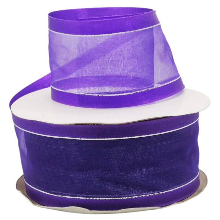 2 Rollos de Listón de Organza con Orilla Metálica Morado-Plata #12 con 50 m c/u Ancho:50 mm