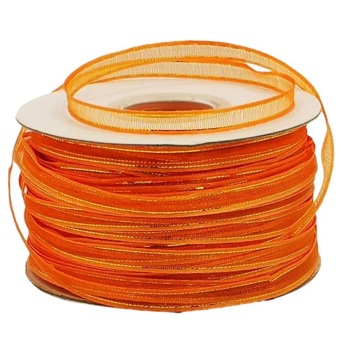Rollo de Listón de Organza con Orilla Metálica Naranja-Oro #1 con 100 m Ancho:6 mm