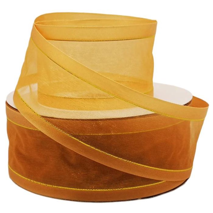 2 Rollos de Listón de Organza con Orilla Metálica Oro-Oro #12 con 50 m c/u Ancho:50 mm