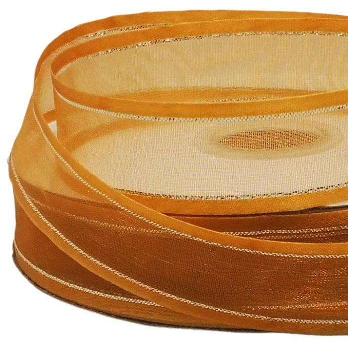 2 Rollos de Listón de Organza con Orilla Metálica Oro-Plata #5 con 50 m c/u Ancho:22 mm