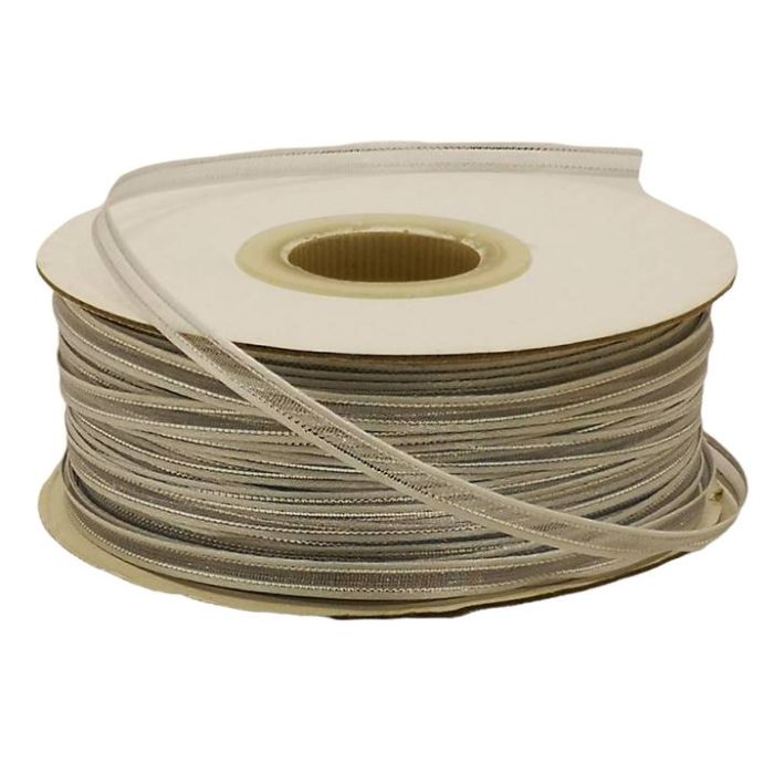Rollo de Listón de Organza con Orilla Metálica Plata-Plata #0 con 100 m Ancho:4 mm