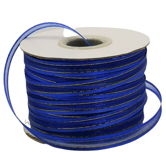 Rollo de Listón de Organza con Orilla Metálica Rey-Oro #1 con 100 m Ancho:6 mm