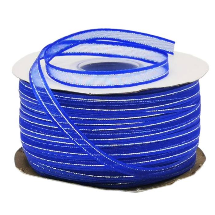Rollo de Listón de Organza con Orilla Metálica Rey-Plata #1 con 100 m Ancho:6 mm
