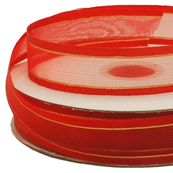 2 Rollos de Listón de Organza con Orilla Metálica Rojo-Oro #5 con 50 m c/u Ancho:22 mm