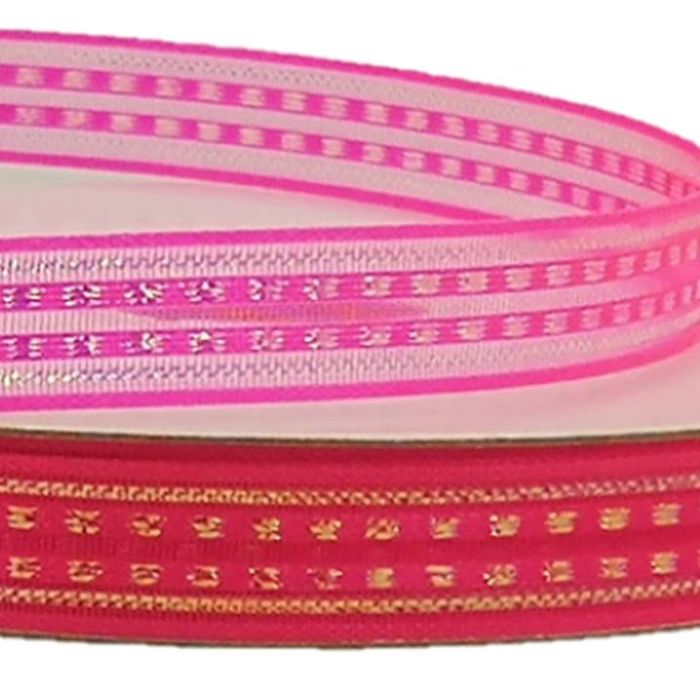 3 Rollos de Listón De Organza Iridiscente Rosa Caliente #1.5 9 mm 25 mts c/u