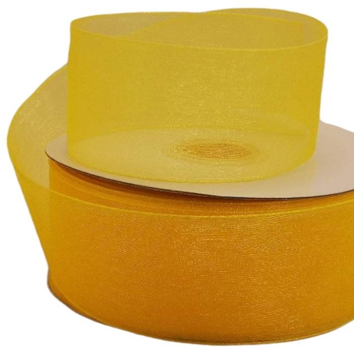 2 Rollos de Listón De Organza Liso Amarillo Canario #9 con 50 mts c/u Ancho:38 mm