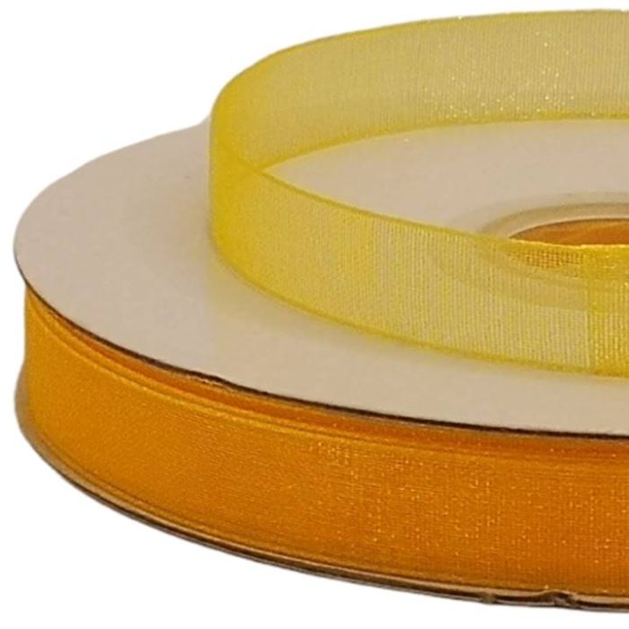 2 Rollos de Listón De Organza Liso Amarillo Mango #1.5 con 50 mts c/u Ancho:9 mm