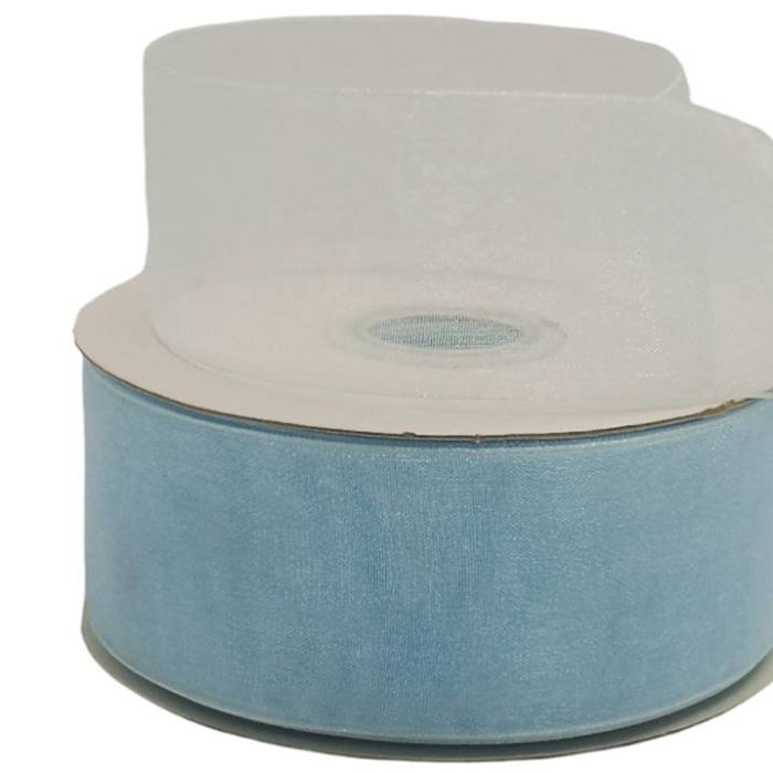 2 Rollos de Listón De Organza Liso Azul Cielo #9 con 50 mts c/u Ancho:38 mm