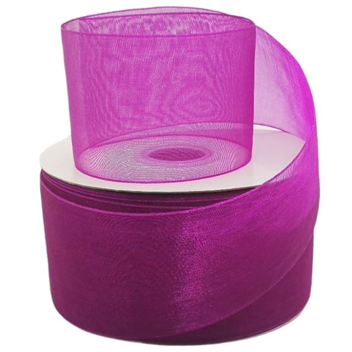 2 Rollos de Listón De Organza Liso Bugambilia #12 con 50 mts c/u Ancho:50 mm