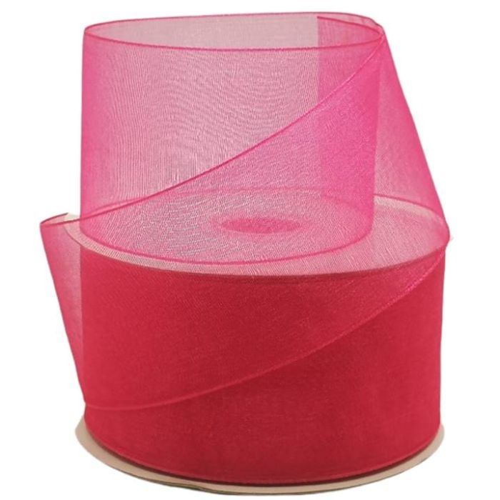 2 Rollos de Listón De Organza Liso Fiusha #12 con 50 mts c/u Ancho:50 mm
