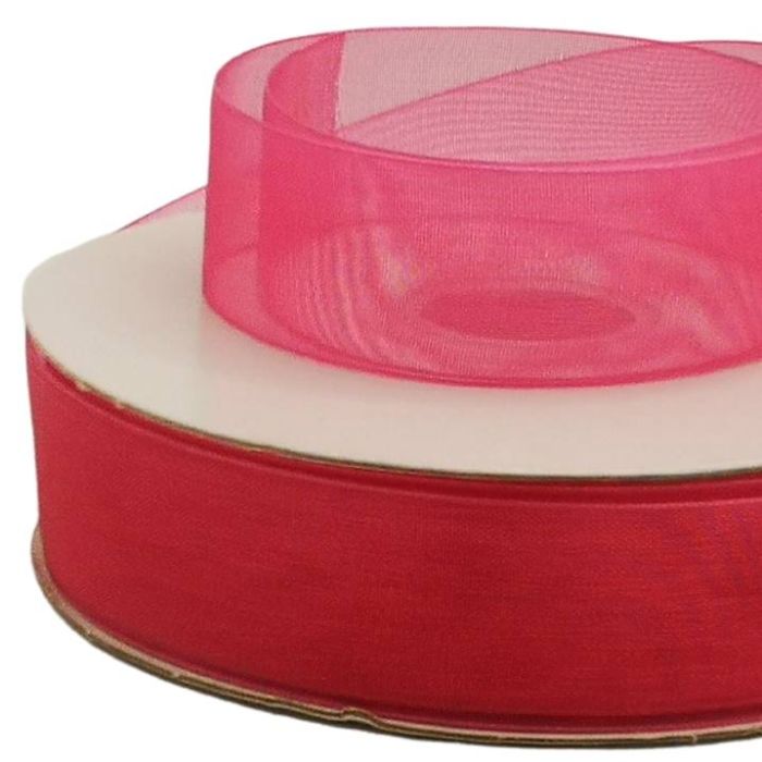 2 Rollos de Listón De Organza Liso Fiusha #5 con 50 mts c/u Ancho:22 mm