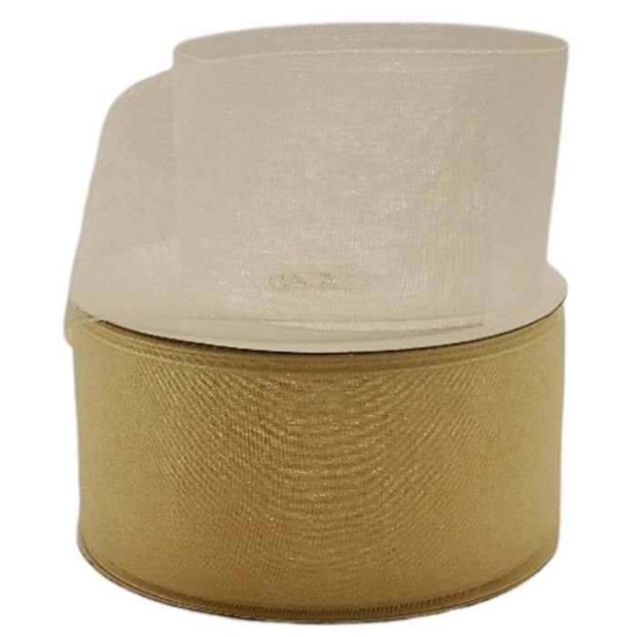 2 Rollos de Listón De Organza Liso Hueso #12 con 50 mts c/u Ancho:50 mm