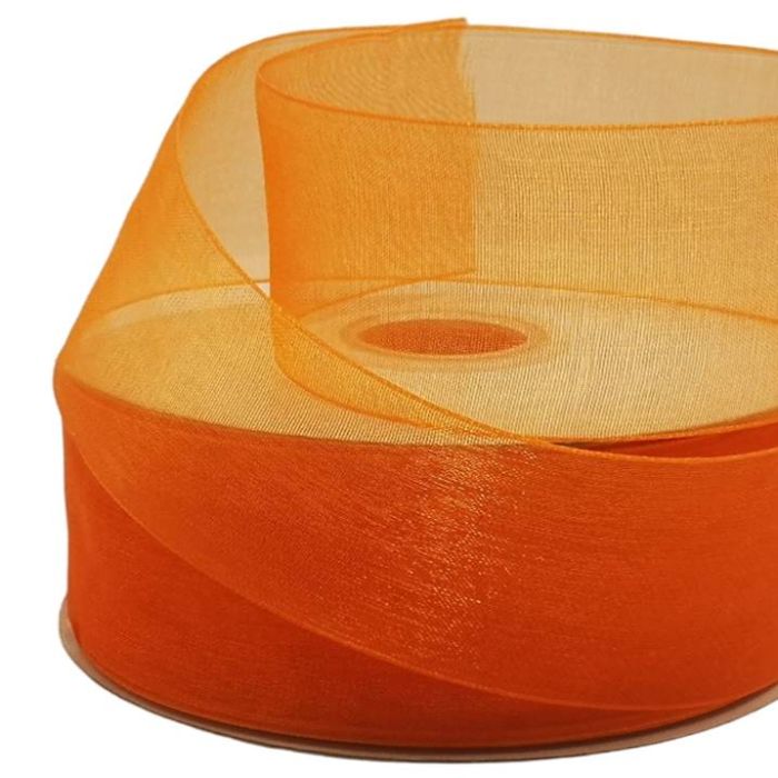 2 Rollos de Listón De Organza Liso Naranja #9 con 50 mts c/u Ancho:38 mm