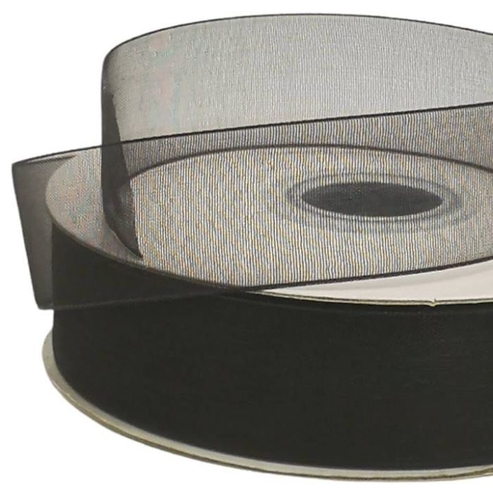 2 Rollos de Listón De Organza Liso Negro #5 con 50 mts c/u Ancho:22 mm