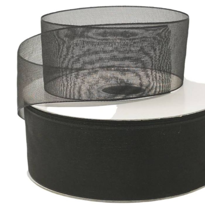 2 Rollos de Listón De Organza Liso Negro #9 con 50 mts c/u Ancho:38 mm