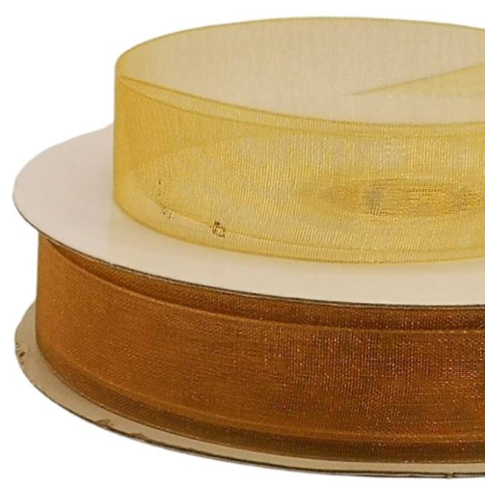 2 Rollos de Listón De Organza Liso Oro #3 con 50 mts c/u Ancho:16 mm