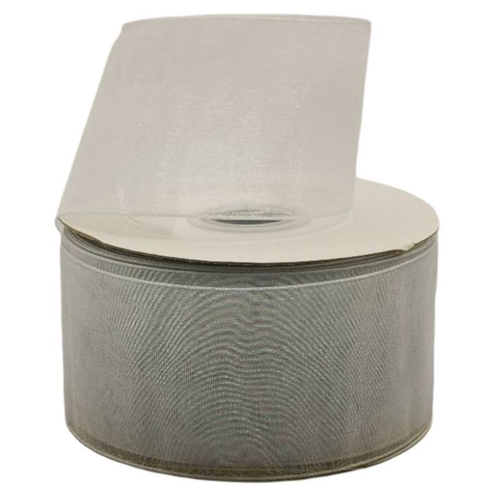 2 Rollos de Listón De Organza Liso Plata #12 con 50 mts c/u Ancho:50 mm