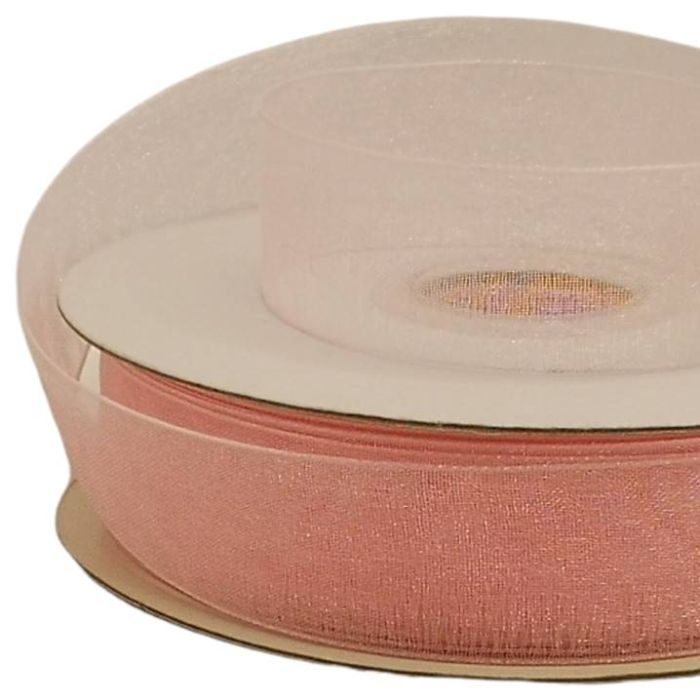 2 Rollos de Listón De Organza Liso Rosa #5 con 50 mts c/u Ancho:22 mm