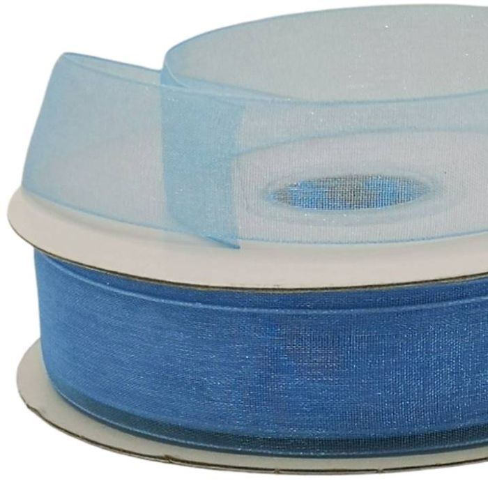 2 Rollos de Listón De Organza Liso Turquesa #5 con 50 mts c/u Ancho:22 mm
