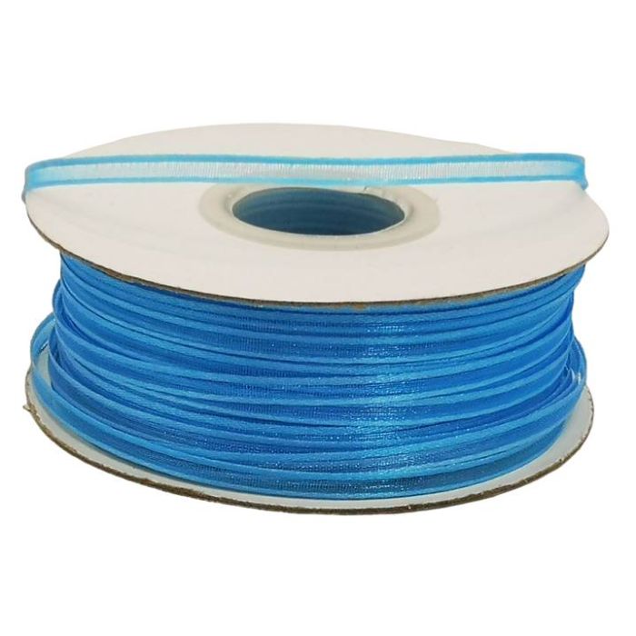 2 Rollos de Listón de Organza Satín Liso Azul Turquesa #0 con 100 m c/u Ancho:4 mm