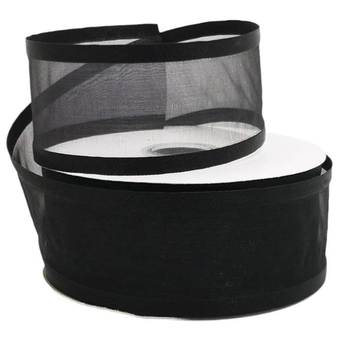 2 Rollos de Listón de Organza Satín Liso Negro #12 con 50 m c/u Ancho:50 mm