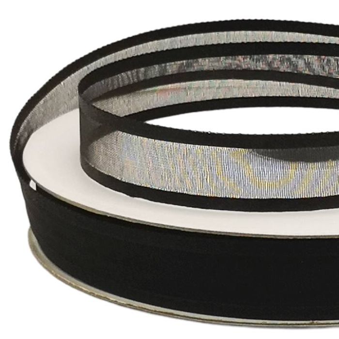 2 Rollos de Listón de Organza Satín Liso Negro #3 con 50 m c/u Ancho:16 mm