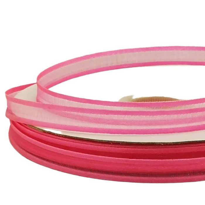 3 Rollos de Listón de Organza Satín Liso Rosa #1.5 con 50 m c/u Ancho:9 mm