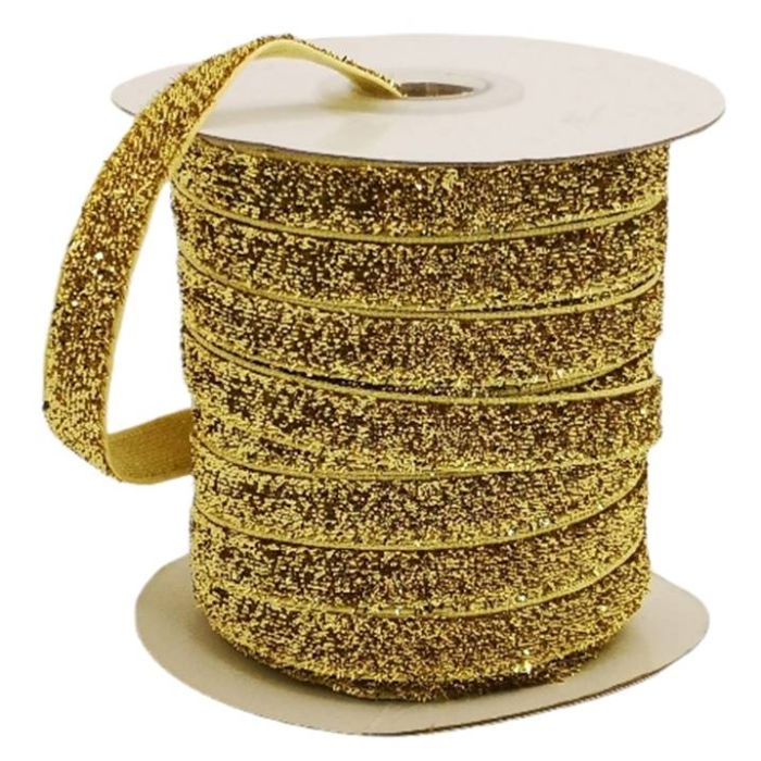 3 Rollos de Listón de Terciopelo Metálico Oro 10 mm con 25 mts c/u