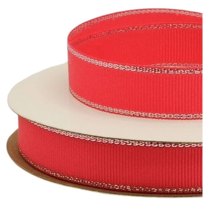 3 Rollos de Listón Popotillo Con Orilla Metalica Plata-Fiusha 16 mm con 25 mts c/u