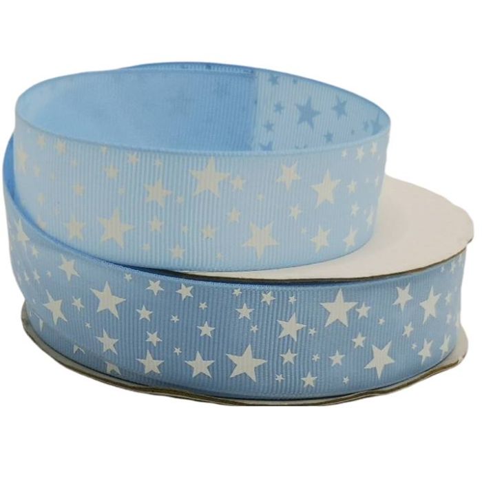 3 Rollos de Listón Popotillo Estrellas Azul Cielo con 25 mts c/u Ancho:2.5 cm