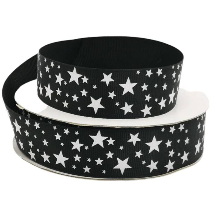 3 Rollos de Listón Popotillo Estrellas Negro con 25 mts c/u Ancho:2.5 cm