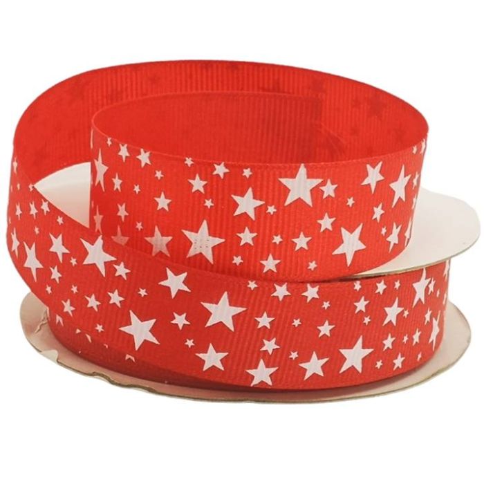 3 Rollos de Listón Popotillo Estrellas Rojo con 25 mts c/u Ancho:2.5 cm