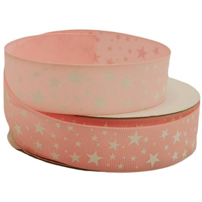 3 Rollos de Listón Popotillo Estrellas Rosa con 25 mts c/u Ancho:2.5 cm