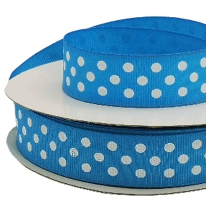 3 Rollos de Listón Popotillo Lunares Bolitas Azul Cielo con 25 mts c/u Ancho:24 mm Mod.HE140-D31