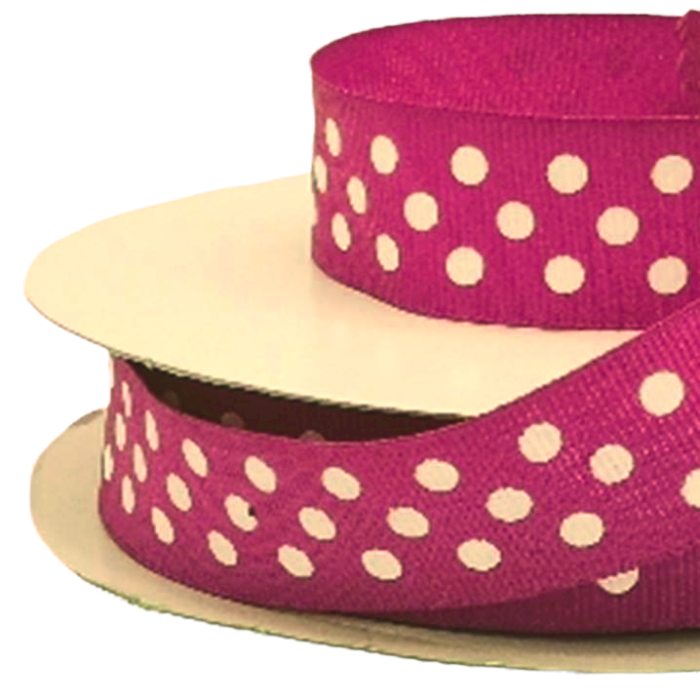 3 Rollos de Listón Popotillo Lunares Bolitas Fiusha con 25 mts c/u Ancho:24 mm Mod.HE140-E72