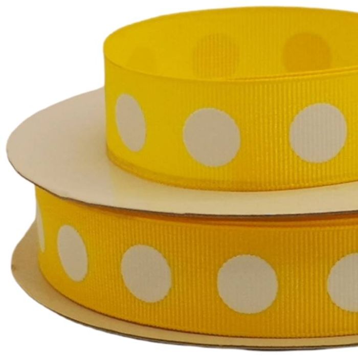 3 Rollos de Listón Popotillo Lunares Círculos Amarillo con 25 mts c/u Ancho:24 mm Mod.HE138-B62