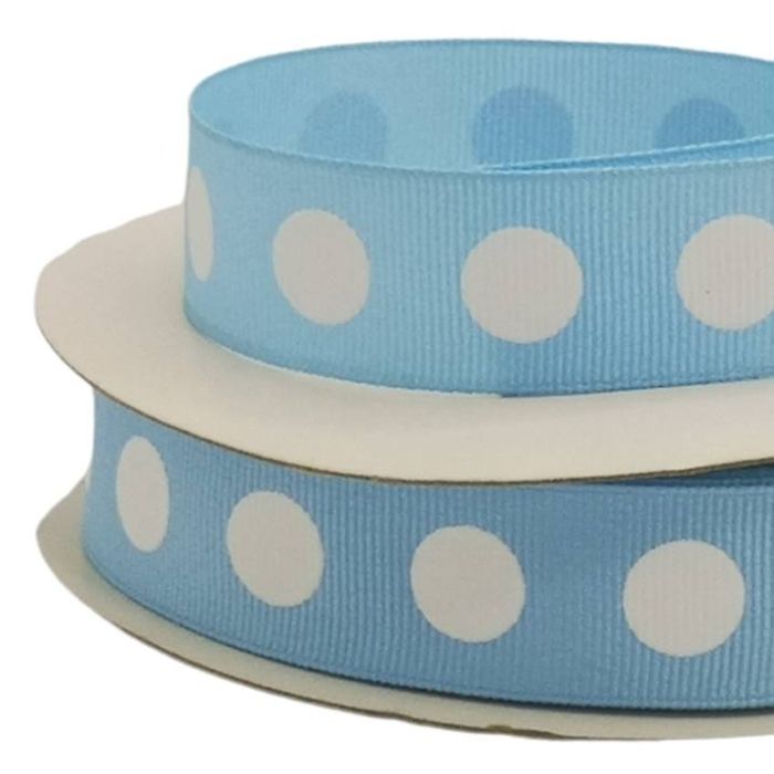 3 Rollos de Listón Popotillo Lunares Círculos Azul Cielo con 25 mts c/u Ancho:24 mm Mod.HE138-B31