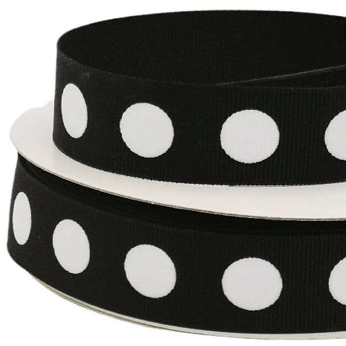 3 Rollos de Listón Popotillo Lunares Círculos Negro con 25 mts c/u Ancho:24 mm Mod.HE138-B82
