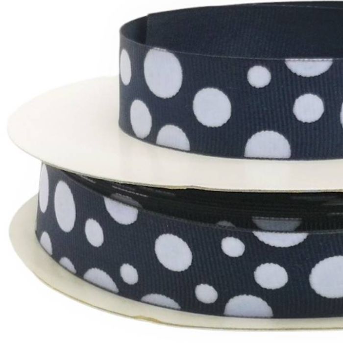 3 Rollos de Listón Popotillo Lunares Motitas Azul Marino con 25 mts c/u Ancho:24 mm Mod.HE139-A34