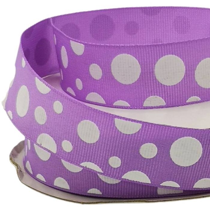 3 Rollos de Listón Popotillo Lunares Motitas Morado con 25 mts c/u Ancho:24 mm Mod.HE139-B42