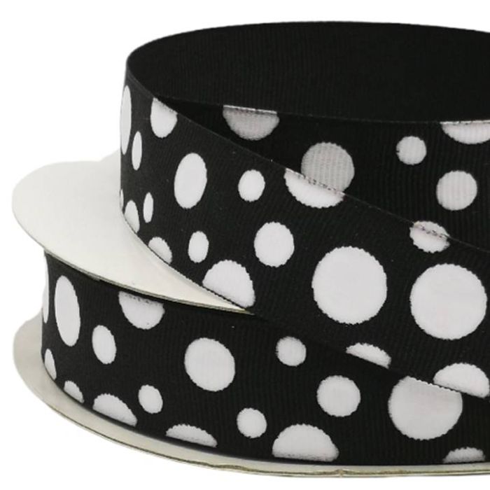 3 Rollos de Listón Popotillo Lunares Motitas Negro con 25 mts c/u Ancho:24 mm Mod.HE139-D82