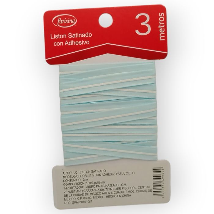 Estás revisando: Listón Satinado con Adhesivo Azul Cielo #1.5