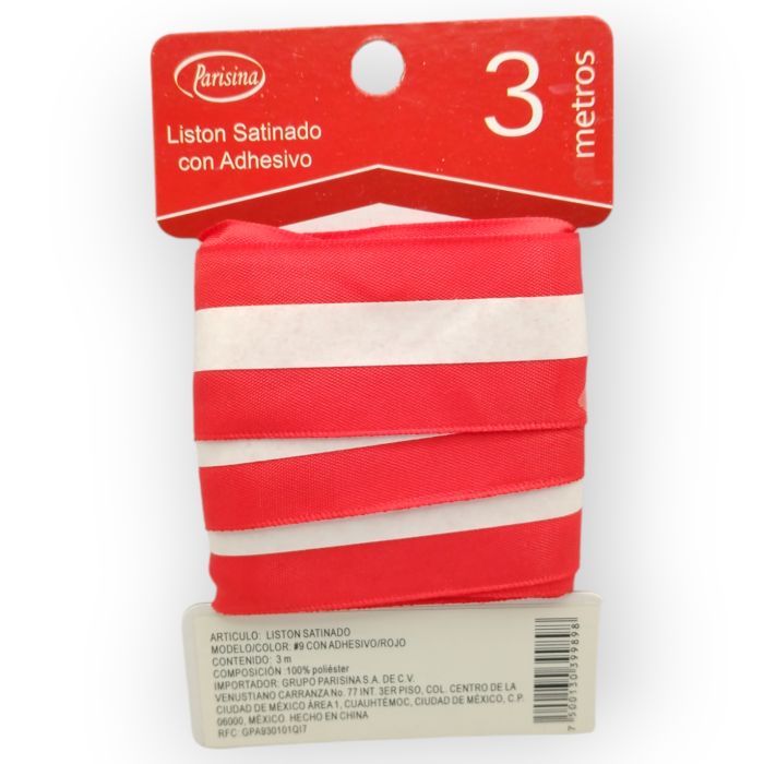 Estás revisando: Listón Satinado con Adhesivo Rojo #9