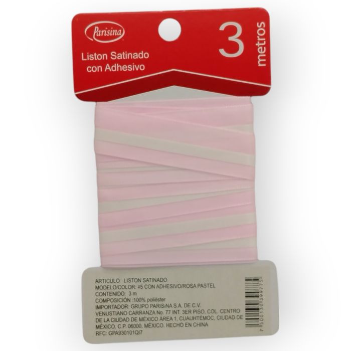 Estás revisando: Listón Satinado con Adhesivo Rosa Pastel #5