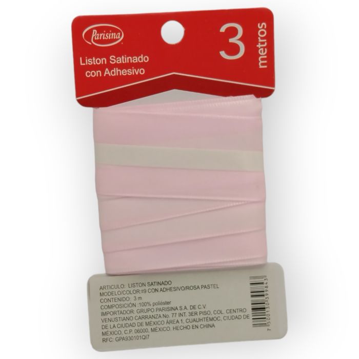 Listón Satinado con Adhesivo Rosa Pastel #9