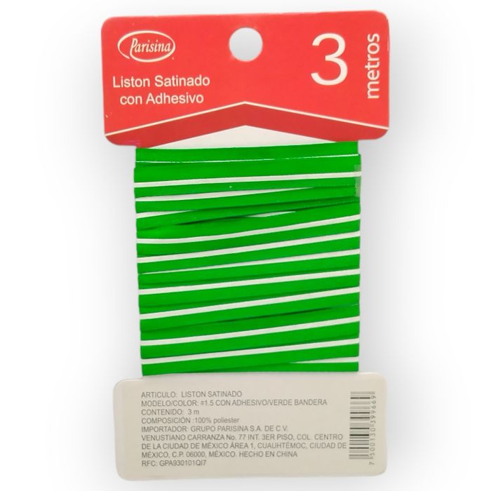 Descripción / Listón Satinado con Adhesivo Verde Bandera #1.5