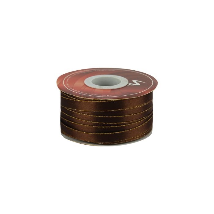 3 Rollos de Listón Satinado Con Orilla Metálica Oro-Café #0 con 50 m c/u Ancho: 4 mm