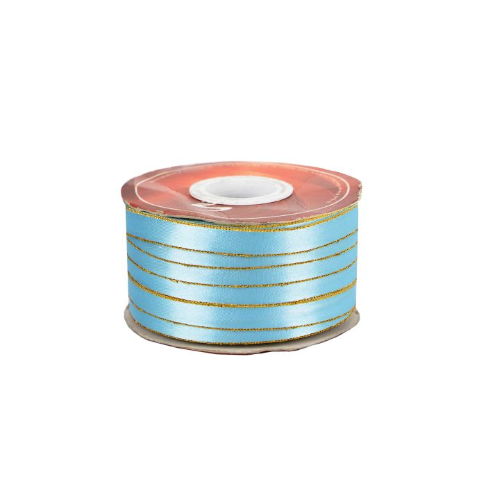 3 Rollos de Listón Satinado Con Orilla Metálica Oro-Cielo #0 con 50 m c/u Ancho: 4 mm