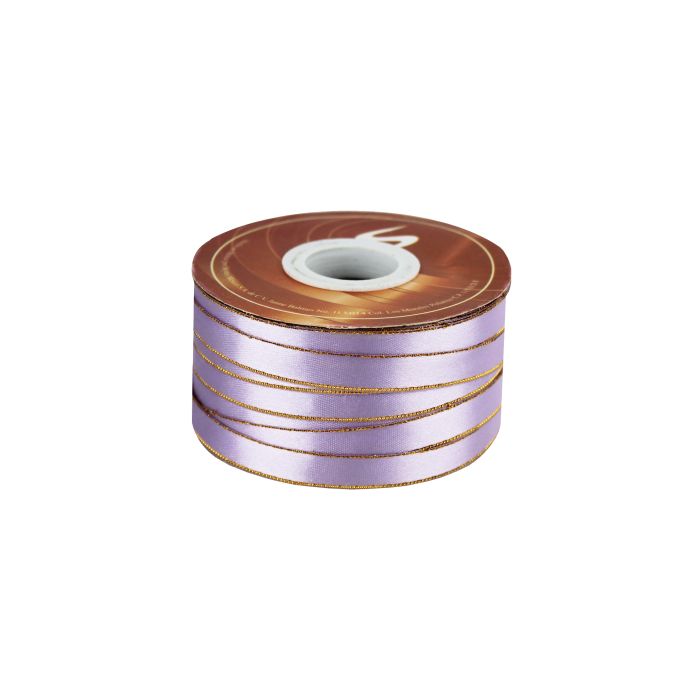 2 Rollos de Listón Satinado Con Orilla Metálica Oro-Lila #5 con 50 m c/u Ancho: 22 mm