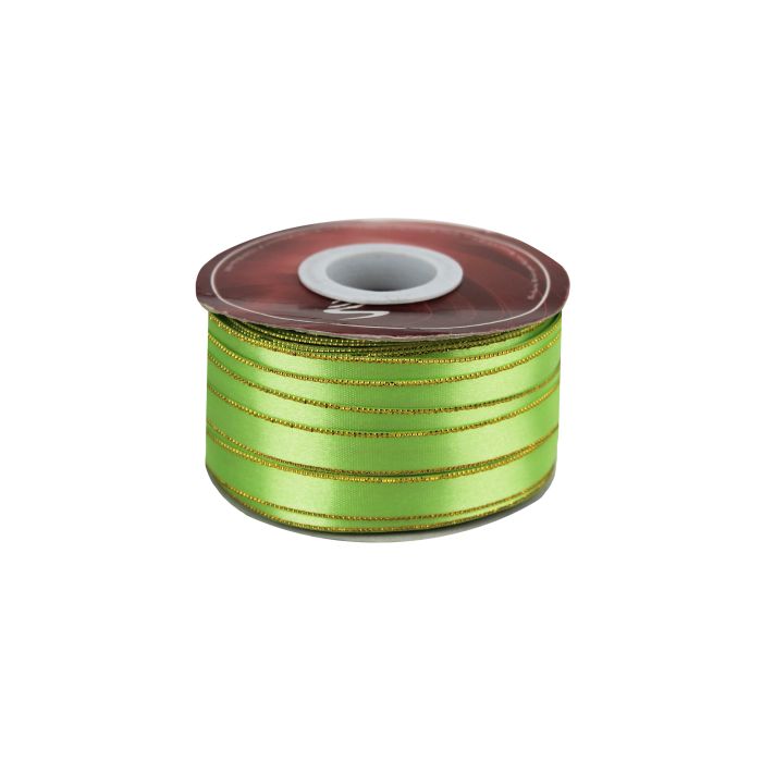 2 Rollos de Listón Satinado Con Orilla Metálica Oro-Limón #1.5 con 50 m c/u Ancho: 9 mm